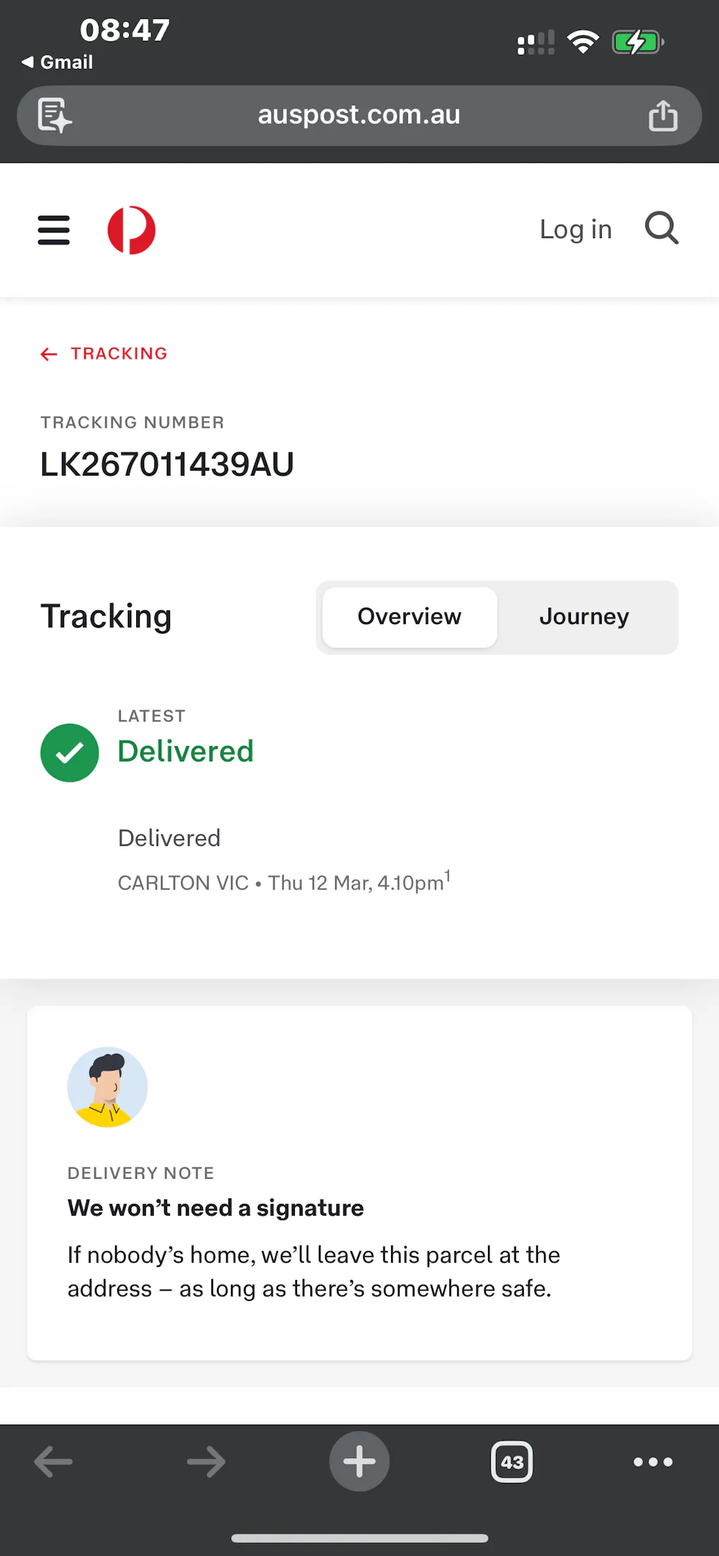 Please note that we respond to customer enquiries within 24 hours, and your enquiry has already been reviewed. We also lodged an investigation with Australia Post regarding the tracking on your parcel.